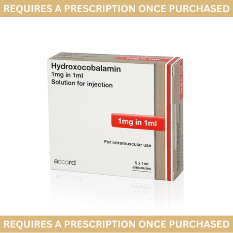 B12 Hydroxocobalamin Solution for Injection 1mg/1ml 5 Ampoules