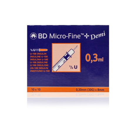 BD 0.3ml Insulin Syringe & Needle 8mm x 30g x 100