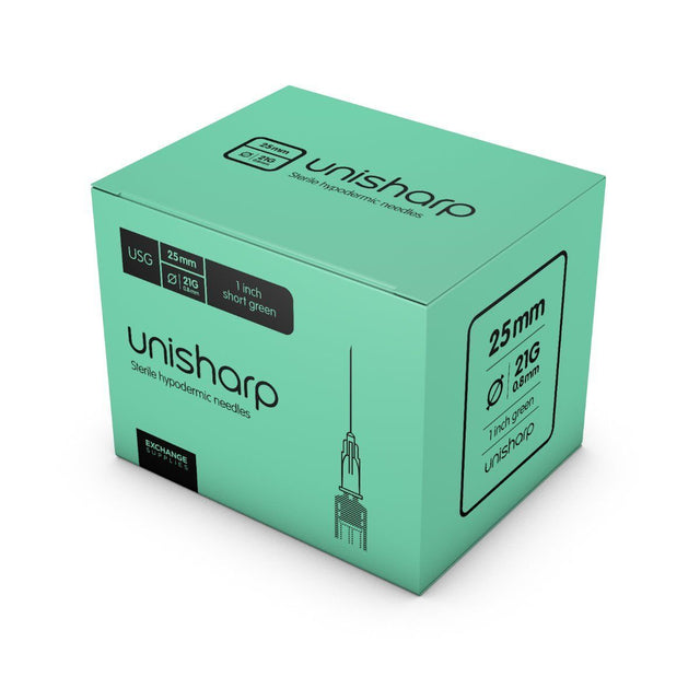 Introducing Unisharp Green needle, the premier 21 gauge hypodermic needle perfect for all your beauty needs! Crafted from high quality materials, this individually blister packed needle fits all luer lock and luer slip syringes made for detachable needles. Drawing liquids into syringes or giving intramuscular injections? Unisharp Green Needle is the tool for the job. This 38mm (1.5 inch) needle has a unique green hub for easy identification, making it the perfect choice in medical settings where safety is paramount. Get yours today and enjoy top performance with no compromises. All you need for success - Two Face Aesthetics!