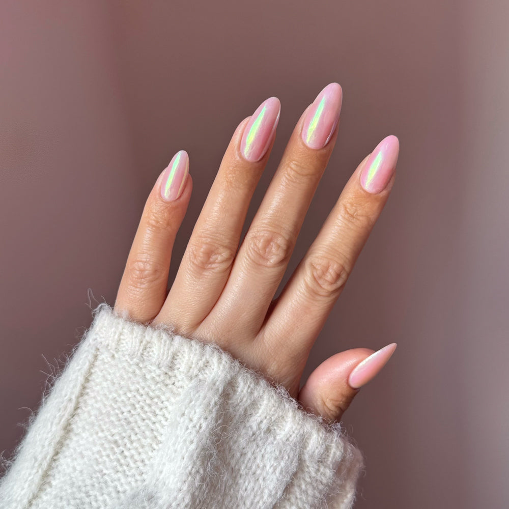 Unleash a magical manicure every time with shade “My Little Unicorn”. This gorgeous sheer chrome powder shifts from a subtle lavender hue to a mystical and soft green.