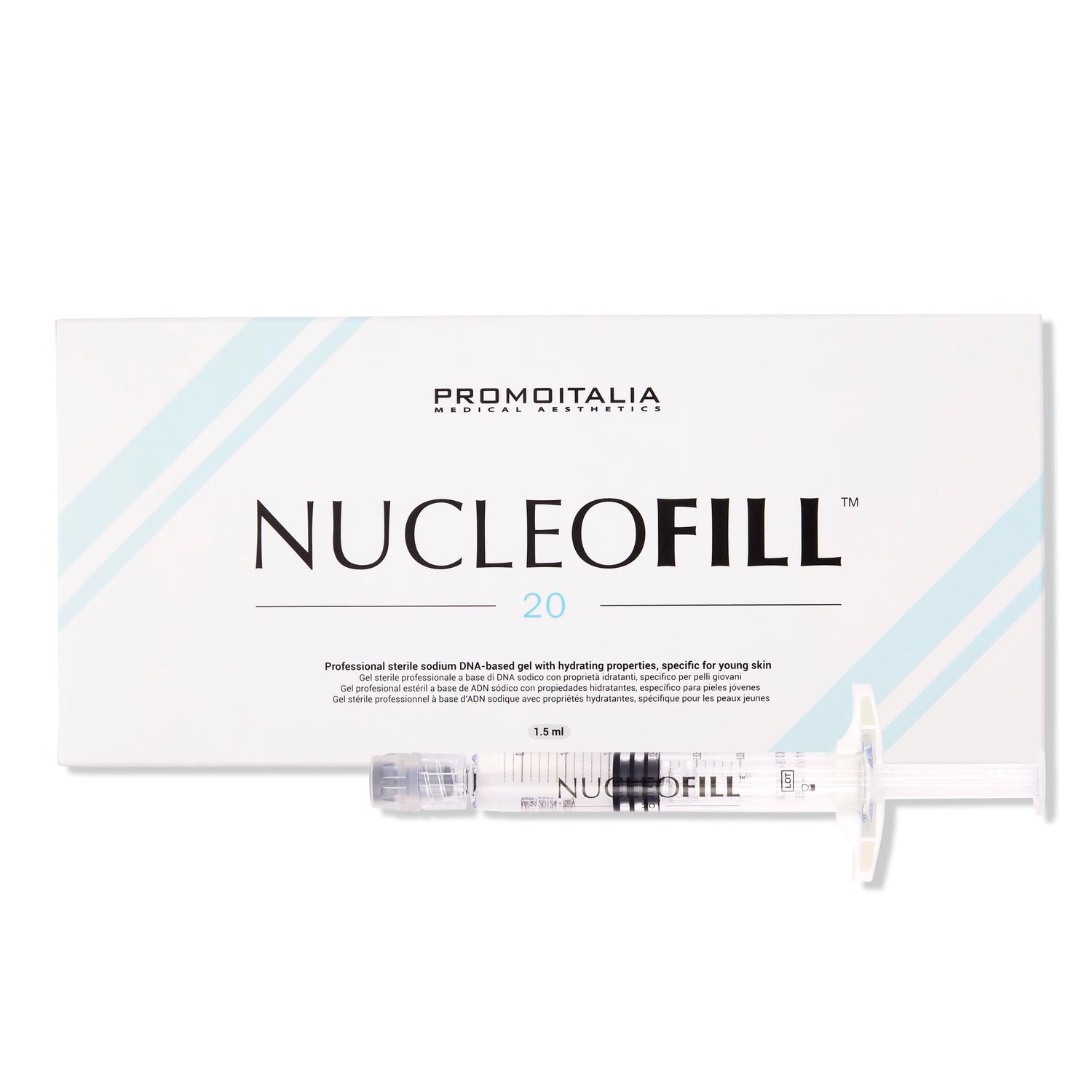 Nucleofill 20 (Medium) is a new line of sterile sodium DNA-based gel with hydrating properties, specific for young skin. As an anti-ageing treatment, Nucleofill is designed to improve skin elasticity and tightness as well as aid in the prevention of wrinkles.