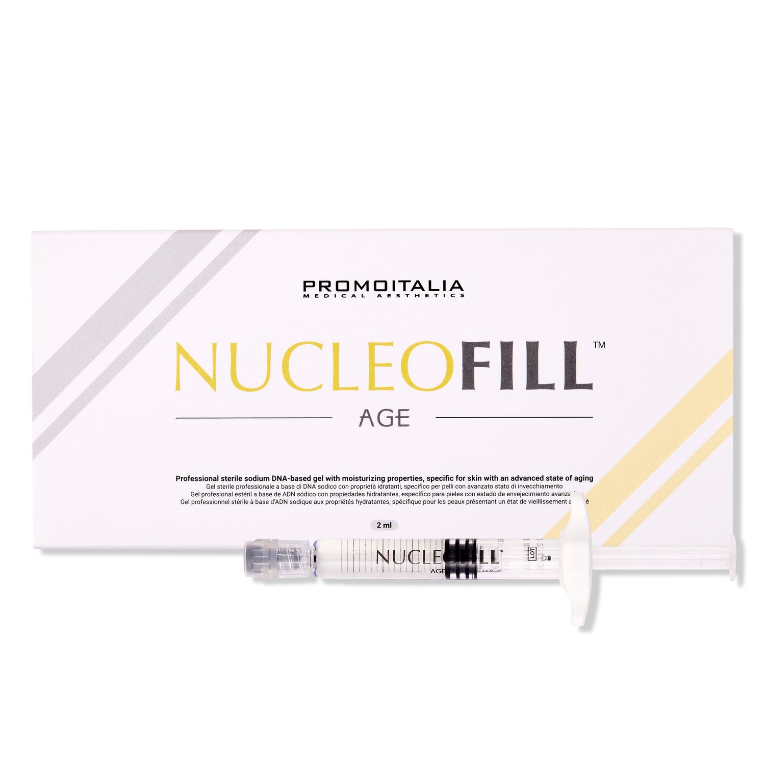 Nucleofill Age (Medium Plus 2.5%) offers intense hydration and stimulates collagen for a youthful, radiant complexion.