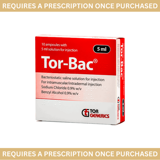 TOR-BAC Bacteriostatic saline solution for injection 1 x 5ml ampoules.